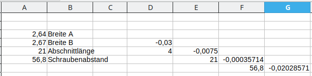(Breite oben - Breite unten) : 4 : Länge des Streifens * Schraubenabstand)