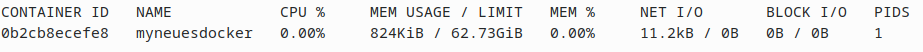 Da nur ein Container läuft, ist die Ausgabe relativ knapp: