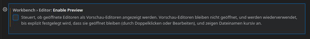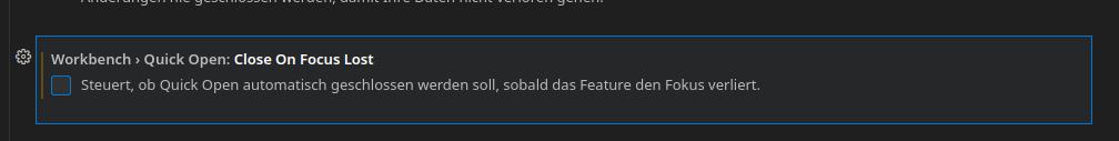 Scheinbar habe ich endlich den Anpacker gefunden, um dieses nervige Verhalten von Visual Studio Code abzustellen. In den Einstellungen ist es dieser Abschnitt: